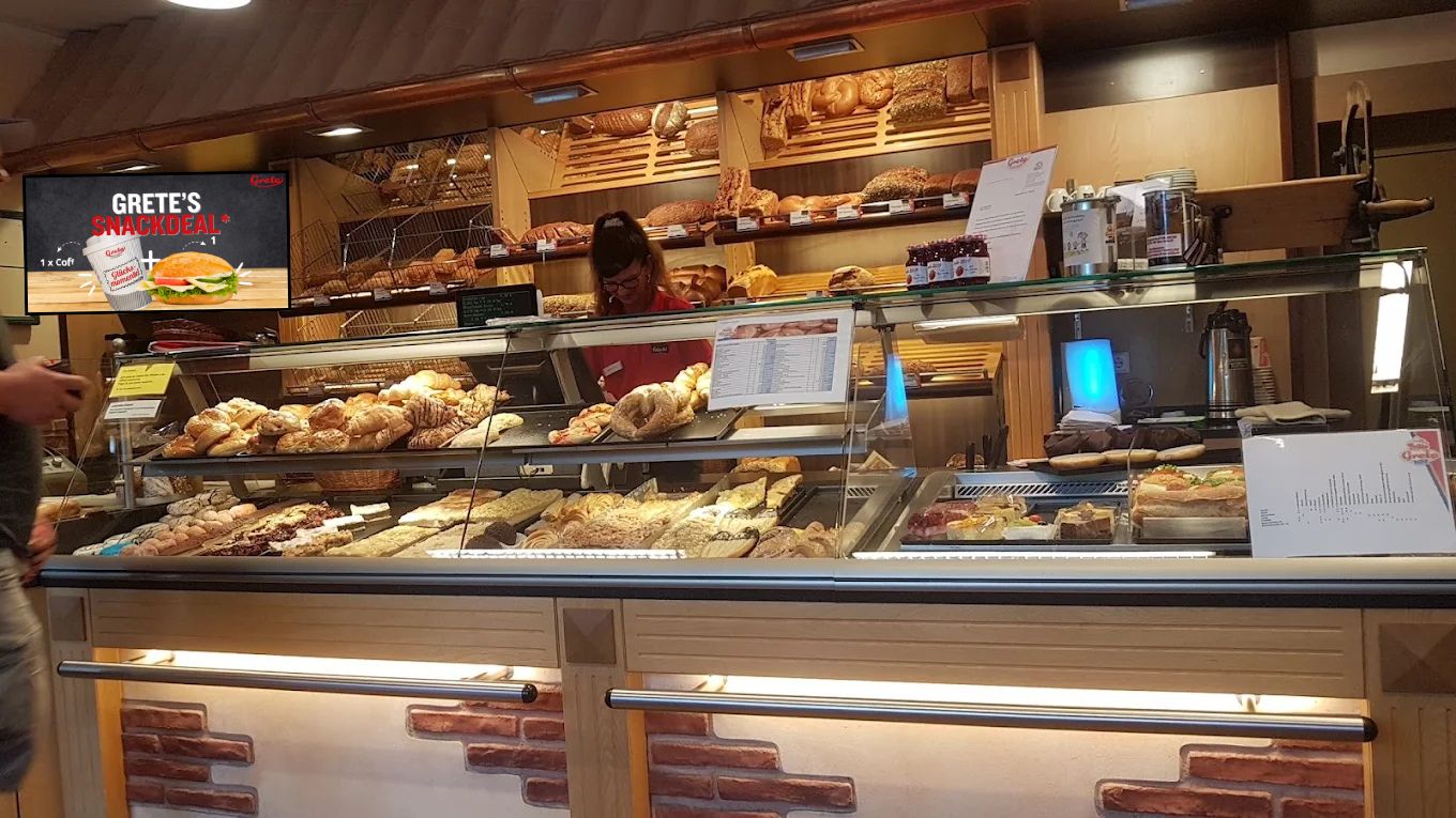 Mit Digital Signage schafft die Landbäckerei Grete einen zusätzlichen Mehrwert für ihre Kundinnen und Kunden – ganz ohne aufdringliche Werbung.